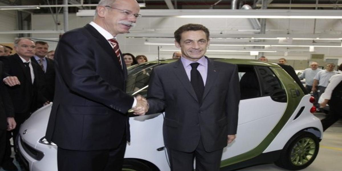 Notre président visitait aujourd’hui l’usine Smart de Hambach. Il y a rencontré Dieter Zetsche, responsable de Marcedes. Ensemble, ils ont annoncé que la future Smart Fortwo ED (Electric Drive) sera produite en série sur ce site à partir de 2012.
