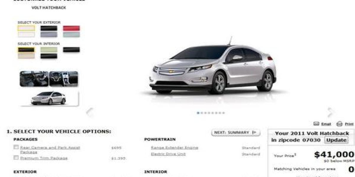 Avis à nos éventuels lecteurs résidant de l’autre côté de l’Atlantique et éventuellement client de la berline Chevrolet : la Volt se décline désormais via son configurateur officiel.