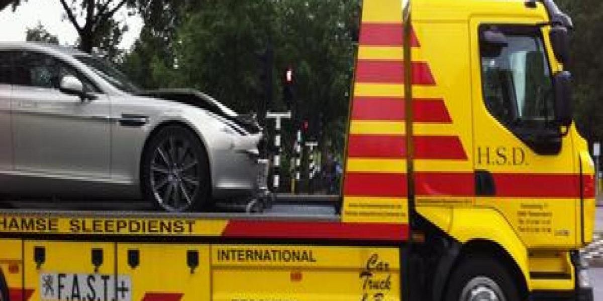 Et voilà ce qui semble bien se présenter comme la première Aston Martin Rapide au tas. Pas grand chose de plus à signaler en complément de quelques photographies hormis le fait que l’accident semble s’être déroulé à Eindhoven, ville située dans le sud des Pays-Bas (mais camion de transport visiblement belge). Trop véloce la Rapide ?!