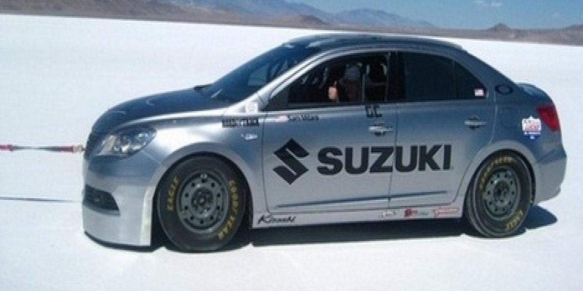 Suzuki avait prévenu son intention d’inscrire son nom tout en haut des tablettes avec la ferme intention de truster la première place dans la catégorie « Blown Gas Coupé ». Au volant de la Suzuki Kizashi Bonneville Special 2010 modifiée de l’American Suzuki Motor Corporation, Sam Mitani de la revue Road & Track a donc finalement inscrit la Kizashi dans le livre des records (et a lui-même joint le club des 320 km/h), atteignant 327,856 km/h lors du Bonneville Speed Week 2010. Au passage la berline japonaise efface des tablettes l’ancien record de 325,572 km/h. Bref une performance épicée sur un lac salé !