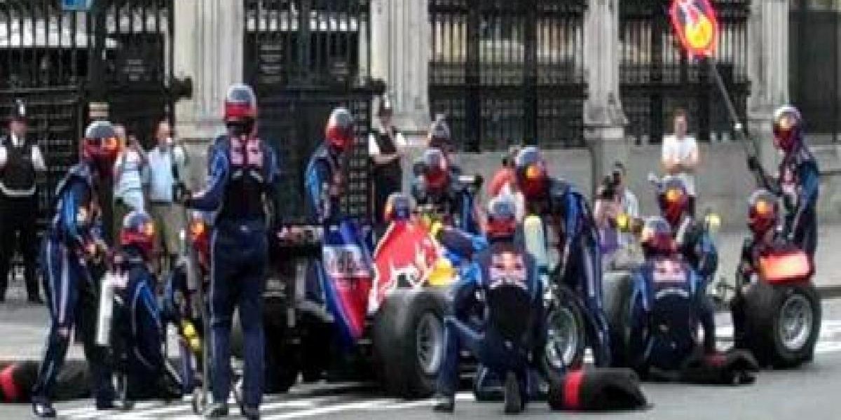 Après un accident méchamment spectaculaire durant le GP d’Europe, Mark Webber a repris le train-train quotidien. Et de s’offrir avec le sponsor Red Bull une petite opération commercialo-marketing intéressante ce matin du côté de Londres. A six heures du matin il s’est offert un ravitaillement express devant la chambre des communes. Les Lords ne siégeaient pas encore à un horaire aussi matinal.