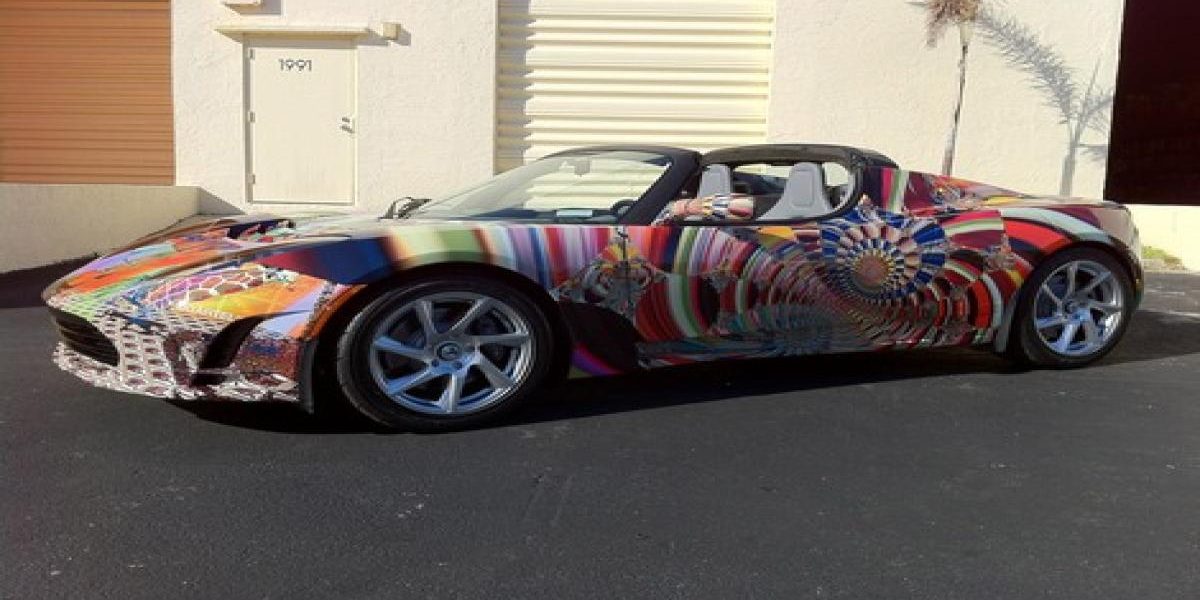 Dans une veine très dernière M3 GT2 signée Jeff Koons et découverte en live au Centre Georges Pompidou), voici un exemplaire artistique de la Tesla Roadster.