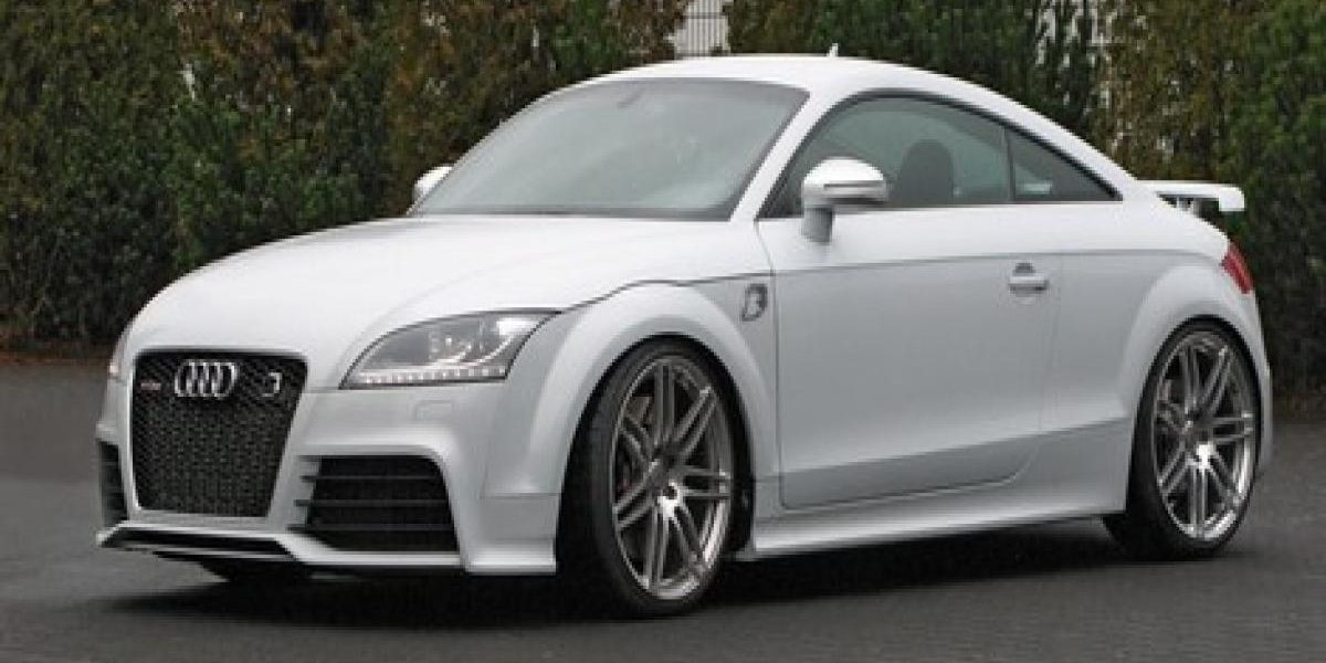 Le méchant coupé allemand (Audi TT RS. Impossible pour le client lambda de se contenter en effet d’un bloc 5 cylindres en ligne turbo à injection directe de 2,5 litres de cylindrée délivrant 340 chevaux (450 Nm) pour un 0 à 100 km/h abattu en 4,6 secondes et 250 km/h en v-max. B&B en offre donc davantage via plusieurs stages de préparation moteur.