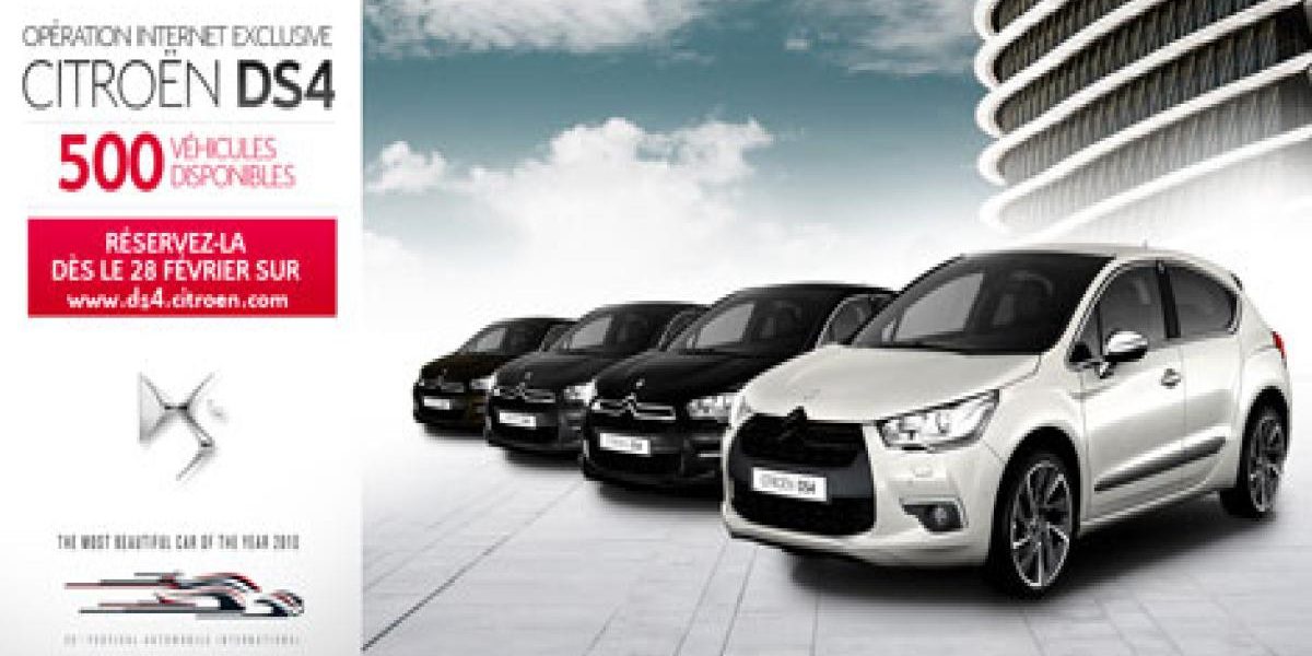 Future réussite commerciale comme la Citroën DS3 ? Citroën propose les 500 premières DS4 lors d’une vente « privée » spéciale sur internet en France, en Allemagne et en Suisse.