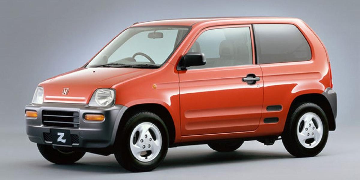 Lancée en 1998, la Honda Z n’a plus grand chose à voir avec la première du nom (1970-1974). il s’agit en effet d’un mini SUV, avec un moteur en position centrale arrière…