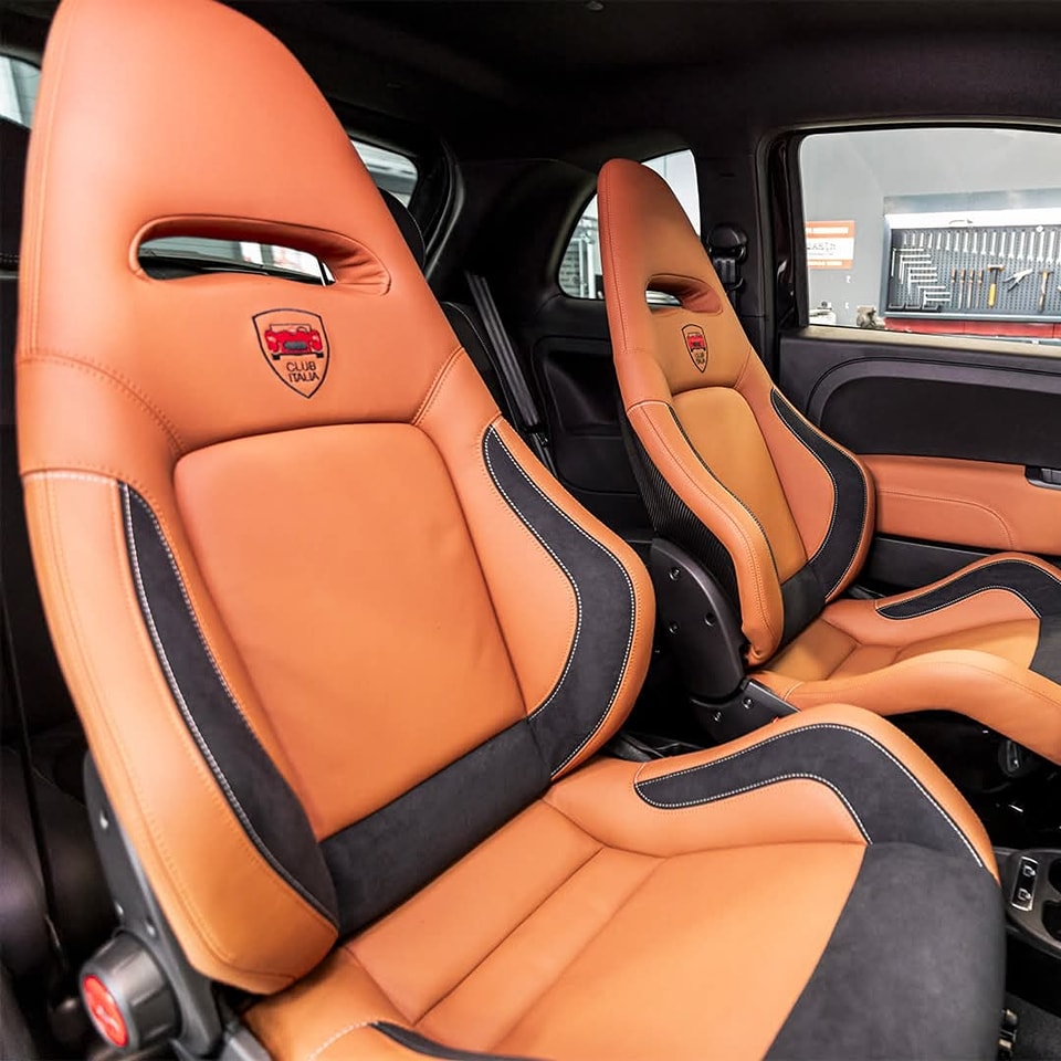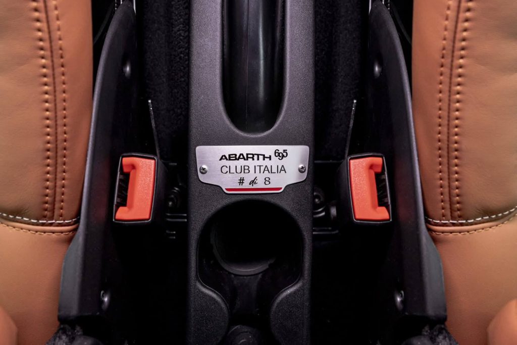 L’Abarth 695 Club Italia représente la dernière évolution de la 695 avec moteur à combustion. Elle fait un 0 à 100 km/h en 6,7 secondes et touche une vitesse de pointe de 225 km/h. Le caractère sportif s’exprime encore par le système d’échappement Record Monza, la suspension Koni FSD et les freins Brembo avec étriers rouges et disques flottants. Chaque exemplaire sera accompagné d’un certificat d’authenticité Abarth Classiche, complet avec étiquette métallique, livret officiel et deux plaques d’identification – une dans l’habitacle et une dans le compartiment moteur – gravées du nom du propriétaire et du numéro progressif de l’édition limitée.