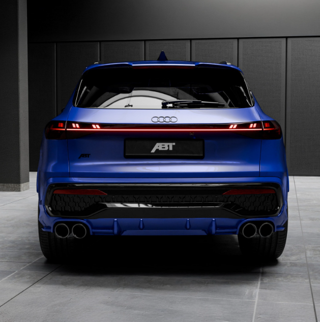 Le pack aérodynamique développé par ABT complète cette métamorphose. Chaque composant a été conçu dans le souci du détail pour accentuer la sportivité sans compromettre l’élégance. Le spoiler avant, l’insert de jupe arrière et le spoiler arrière intégrant des lames aérodynamiques confèrent au SQ5 une signature visuelle distinctive. Les quatre sorties d’échappement en acier inoxydable noir mat de 102 mm rappellent la puissance mécanique sous le capot et traduisent visuellement le tempérament sportif du modèle.