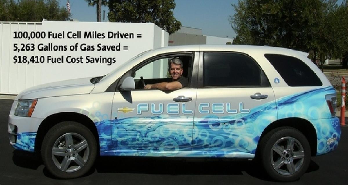 Alors que à ce jour, la flotte d’essai de véhicules à piles à combustible GM a accumulé près de 3 millions miles, ce Chevrolet Equinox Fuel Cell totalise pour sa part 100 000 miles au compteur soit environ 160 000 km. De quoi pour le constructeur américain revendiquer une économie de 5260 gallons d’essence (environ 20 000 litres) représentant 18 000 dollars d’économie à 3,50 $ le gallon.