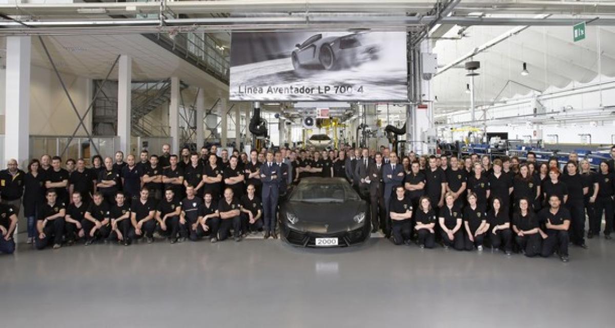 2 000 voitures en près de 2 ans, c’est peu. Sauf lorsqu’il s’agit de Lamborghini Aventador (la Murcielago avait mis 4 ans pour atteindre ce cap.) Le personnel de Sant’ Agata Bolognese peut donc poser fièrement avec. D’autant plus que ce cap correspond à la moitié de la production. Si vous en voulez une, dépêchez-vous…L’Aventador possède un châssis carbone. Chaque moule ne peut être utilisé que 500 fois et Lamborghini ne possède que 8 moules. Ainsi, la production sera volontairement limitée à 4 000 unités.