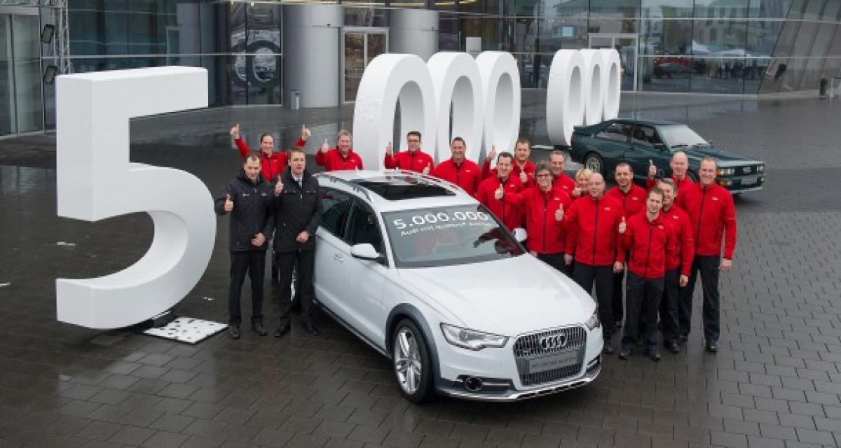 L’histoire commerciale du quattro a commencé en 1980 avec l’Audi quattro pour devenir au fil des années un argument de vente fort pour la marque bavaroise. En 2012, 43% des Audi produites l’ont été en quattro. Le Q5 représente le modèle quattro le plus produit (plus de 200.000 unités). Hors SUV, près d’un client sur 4 choisit d’équiper son Audi de la transmission quattro.