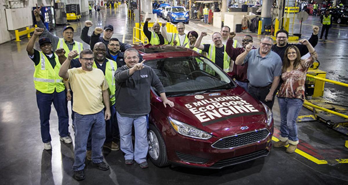 Fin 2012, le compte de la production des moteurs Ecoboost atteignait 500.000 unités. En deux ans et demi, la production s’est sérieusement accélérée, et atteint donc 5 millions d’unités. Cet exemplaire symbolique était une Focus, produite dans l’usine de Wayne, dans le Michigan.