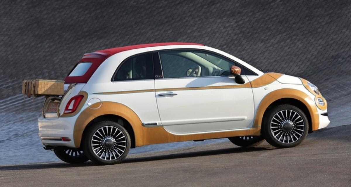 « Un panier pique-nique, qui trouve place sur la malle arrière, est de la même matière alors que les coques des rétroviseurs sont revêtues d’acajou, matériau que l’on retrouve également sur la ligne qui court sur les flancs de la voiture et qui est un hommage aux fameux bateaux Riva », complète la marque italienne.