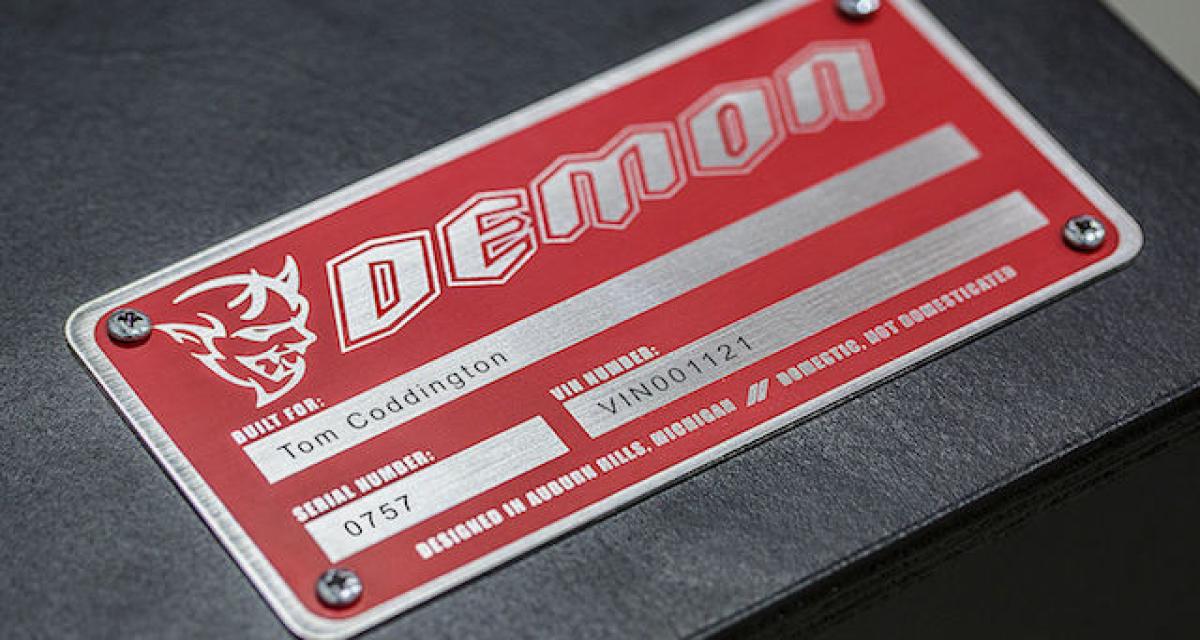 Jusqu’à maintenant Dodge nous a abreuvé de détails techniques aussi alléchants les uns que les autres, mais est resté muet quant à la puissance de la bête. Le constructeur pourrait avoir laissé un indice dans le dernier communiqué de presse. Il y glisse une photo de plaque d’identification de la Challenger SRT Demon qui, outre la présence d’un démon, affiche le chiffre 0757 comme numéro de série.
