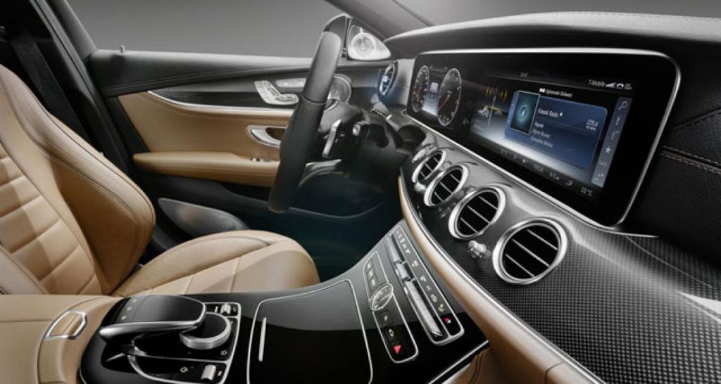 Comme les photos le montrent, la Classe-E reçoit elle aussi un système audio Burmester, avec son 3D doté de 4 haut-parleurs au pavillon. D’une puissance totale de 1400W, il propose au total 23 haut-parleurs, dont un caisson de basse de 25 litres.
