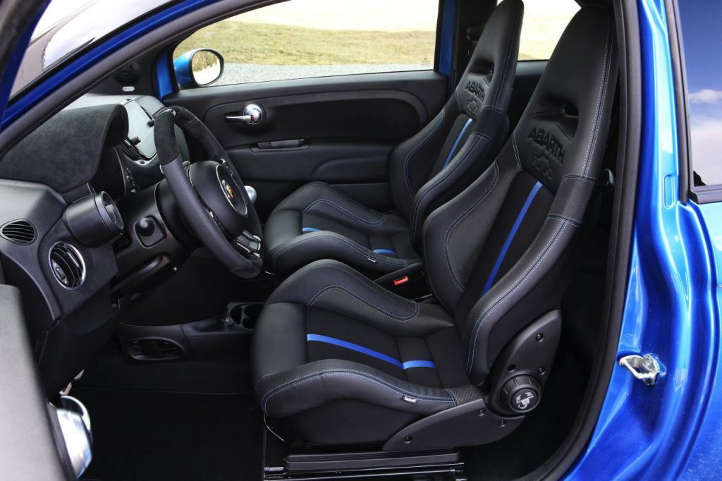 L’équipement standard comprend tous les accessoires attendus par les tifosis du scorpion : le becquet arrière équipé du réglage Assetto Variabile à 12 positions pouvant aller de 0 à 60° , le nouvel échappement Record Monza Sovrapposto, les amortisseurs Koni FSD, les jantes 17 ″ avec finition diamantée, le système de freinage Brembo avec disques avant de 305 mm et étriers à quatre pistons et les sièges Sabelt en tissu avec empiècements et coutures bleues inspirés des finitions de l'ancêtre Fiat.