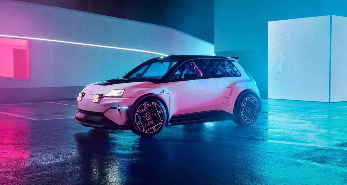 C’est dans une atmosphère néon qui sent bon le « retrowave » et le cyberpunk qu’Alpine nous dévoile depuis Bristol le premier showcar du « dream garare » promis par le A flêché, une réincarnation futuriste et gavée à l’électron de la R5. Cerise sur le gâteau, ce concept roulant a été emmené à bon rythme par les pilotes maison Esteban Ocon et Pierre Gasly, dont les noms figurent en petit sur le bouclier avant.