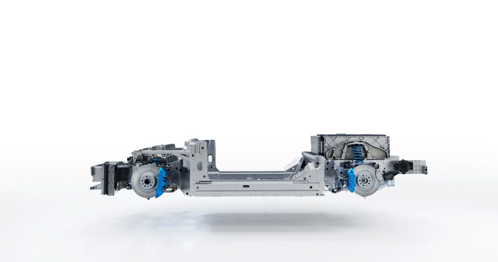 La plateforme a été conçue pour répondre aux contraintes de l’électrification tout en cherchant à préserver les caractéristiques d’une voiture de sport. Elle repose notamment sur :