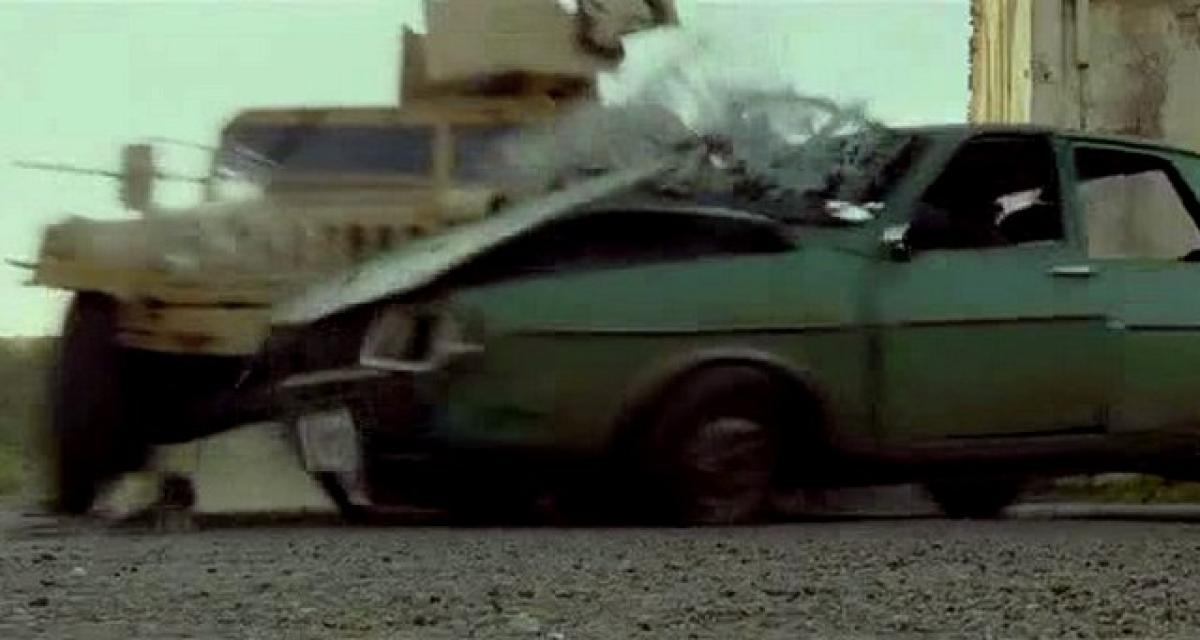 Mais lorsqu’ils sont au volant d’une française, pas de pitié. Cette R12 (et ses occupants) sera transformée en passoire avant d’être ratatinée.