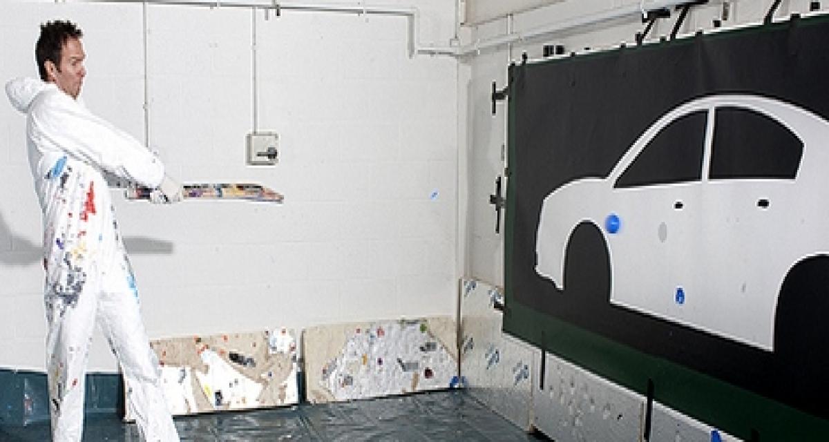 Michael Vaughan a mis huit heures pour créer le tableau, faisant appel à ses talents de joueur de cricket pour récréer avec la plus grande précision précision possible aussi bien la carrosserie que les pneus et les jantes ce à l’aide de cinq balles de cricket de couleurs différentes et plus de 20 litres de peinture.
