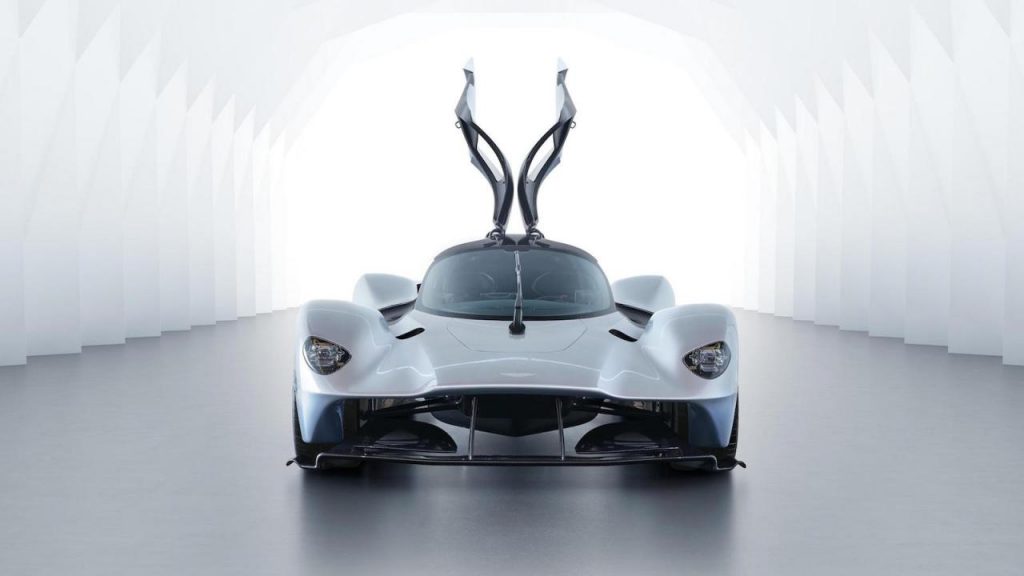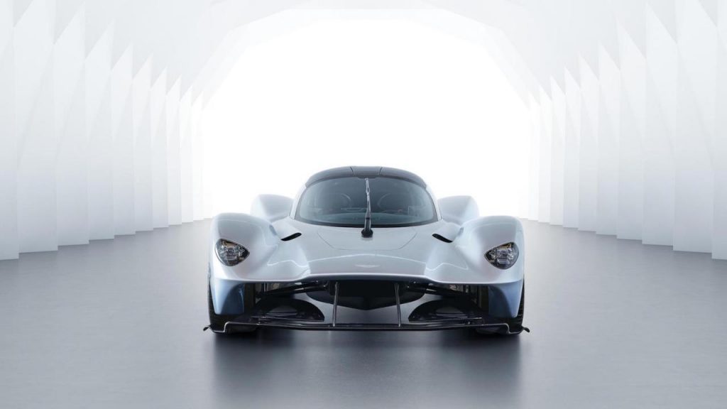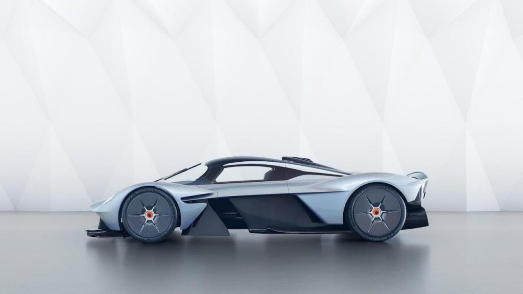Avec la Valkyrie, Adrian Newey a laissé libre cours à son génie, mettant au placard des années de frustration et de règlements de F1. Comparée aux précédentes itérations, cette version presque finale a fait l’objet de nouvelles modifications pour améliorer l’aérodynamique. Elles incluent des jantes presque entièrement fermées, un aileron positionné plus haut et des tunnels aérodynamiques, de part et d’autre du cockpit, retravaillés avec des flancs plus creusés afin d’envoyer plus d’air au diffuseur arrière et d’engluer la Valkyrie au sol. Aston Martin décrit d’ailleurs les deux tunnels comme « extraordinaires ». Ils permettent de s’affranchir d’accessoires aérodynamiques trop voyants et concourent à la pureté de la ligne. Celle-ci a même mené à la disparition de la calandre du constructeur britannique qui n’apparaît plus que sous la forme d’un logo gravé chimiquement épais de 70 microns, 30 % plus fin qu’un cheveu humain, et 99,4 % moins lourd qu’un badge classique.