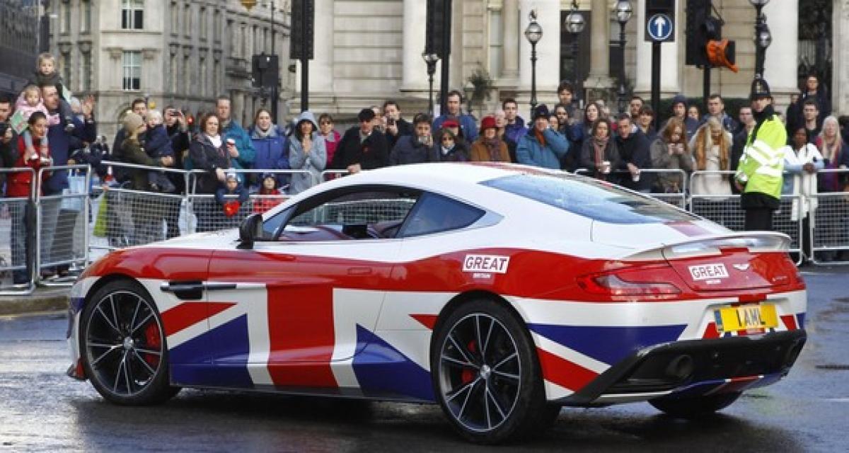 Comme McLaren, Aston Martin fait parti du programme GREAT. Une initiative gouvernementale pour promouvoir l’industrie britannique. D’où cette Vanquish Coupe aux couleurs britanniques. Elle est accompagnée par un cabriolet Volante, une Rapide S et une DB9. Une manière de célébrer aussi le centenaire de la marque.