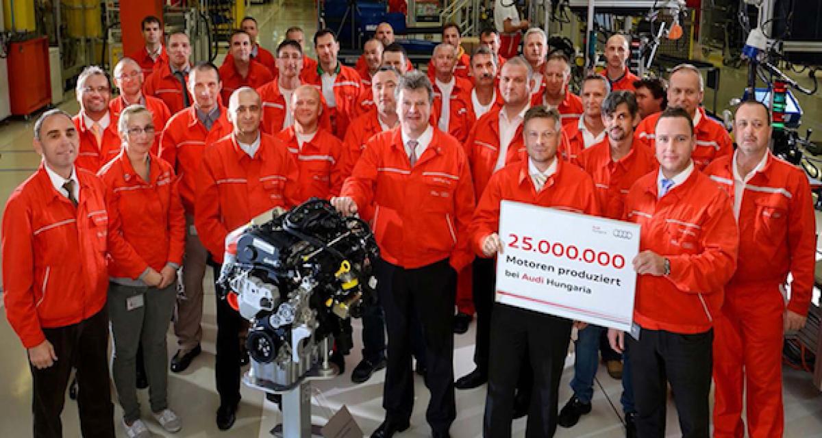 L’histoire de la production de moteurs sur le site de Győr a commencé en 1993 avec la fabrication en pré-série de moteurs avant de débuter la production en grande série de moteurs 4 cylindres (1,8l essence à 5 soupapes par cylindres). En 1997, Audi Hongrie débute la production de V6 et de V8. En 2000, l’usine hongroise a débuté la production des 4 cylindres diesel à injecteur pompes.
