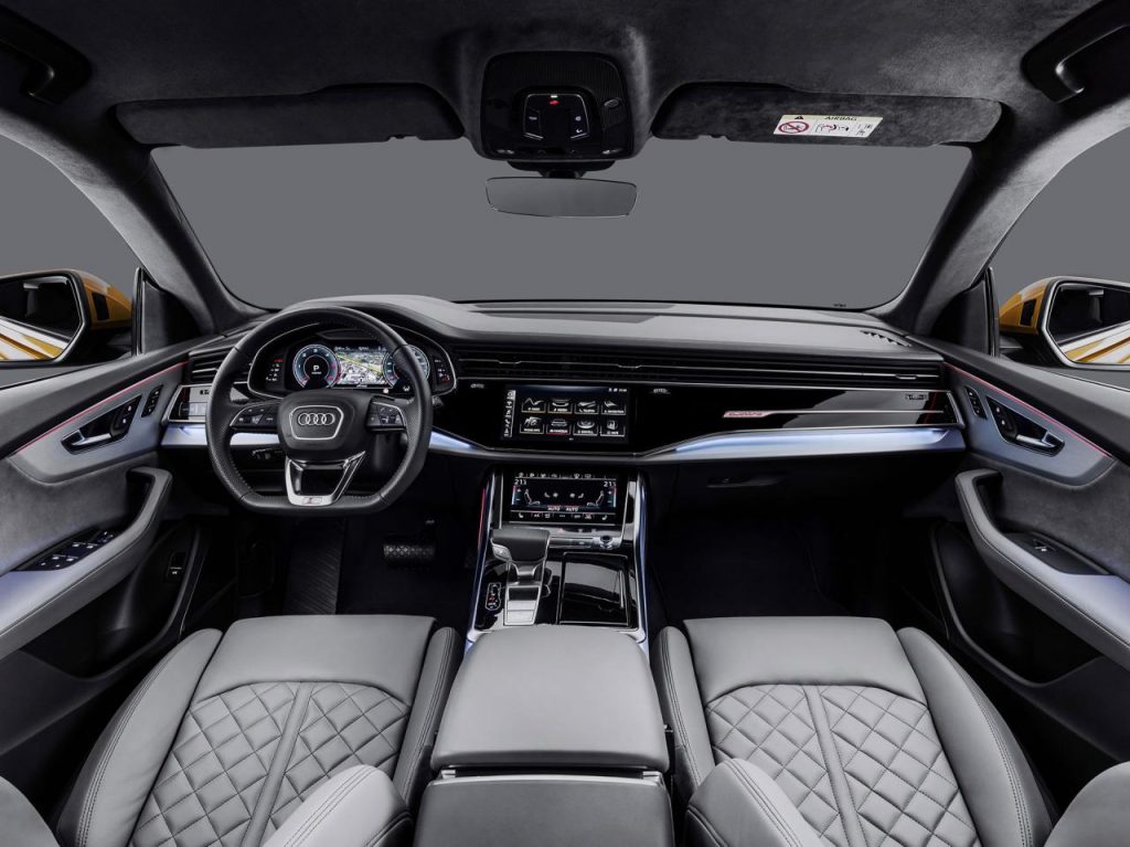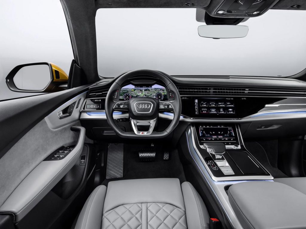 Avec ses roues de 22 pouces chaussées de pneumatiques plutôt adaptés à la route, le Q8 pourra néanmoins tenter de s’aventurer hors pistes, avec une garde au sol de 254 mm, et une suspension pneumatique en option qui permet de régler la hauteur de caisse sur 90 mm. La transmission intégrale est bien entendu en standard, complétée éventuellement pas 4 roues directrices, mais Audi ne s’étend pas pour le moment sur les motorisations. Néanmoins, la totalité de la gamme sera électrifiée, avec des versions hybride 48V, puis hybride rechargeable. Il devrait néanmoins débuter en version 55TFSi avec le V6 3.0 de 340 ch et 500 Nm, et le V6 TDI pour les 45TDI (231 ch) et 50TDI (286 ch).