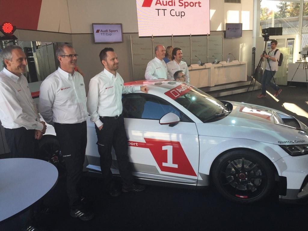 Sans doute un peu de déception pour ceux qui voyaient déjà Audi relever un (vrai) nouveau challenge en allant chercher Citroën en WTCC ou même les cousins de VW en WRC ou officialiser pleinement un engagement en WordRallyCross. Hélas, il s’agit donc d’une formule monotype la Audi Sport TT Cup qui remplace la Scirocco R-Cup (changement de marque donc). Concrètement, il s’agit toujours pour Audi d’offrir une coupe destinée aux (jeunes) pilotes débutants pour détecter les talents les plus prometteurs et pourquoi pas de passer par la suite en DTM ou en WEC où la marque est engagée.