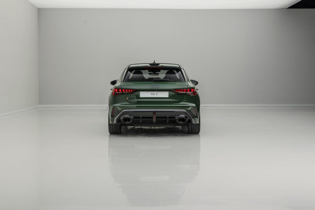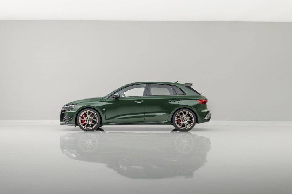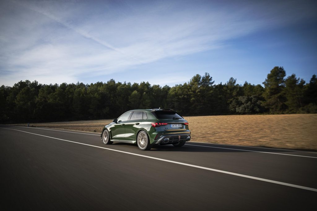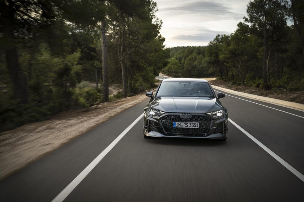 Sous le capot, la compacte conserve le moteur 2.5 TFSI cinq cylindres avec ses caractéristiques déjà vue sur l’Audi RS 3 Sportback « normale ».
