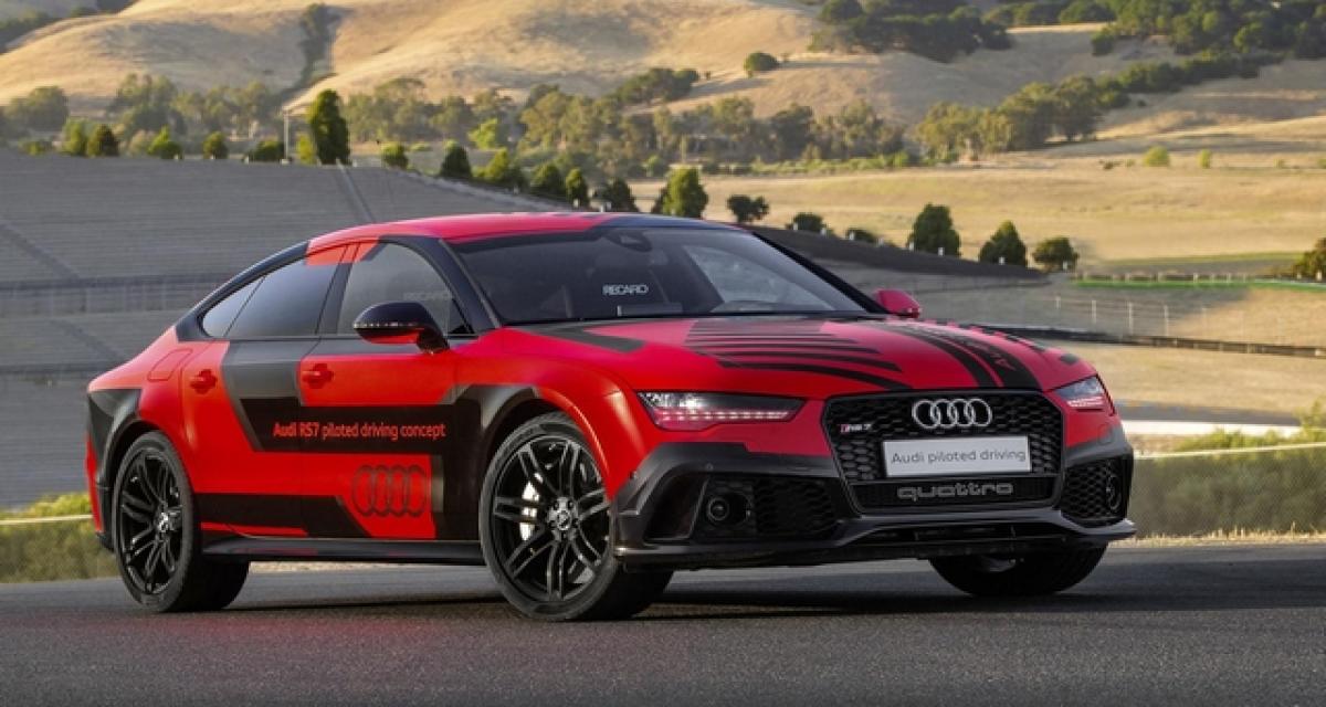 Outre une nouvelle livrée rouge et noire, l’Audi RS7 Piloted Driving Concept perd pas moins de 400 Kg. Le constructeur d’Ingolstadt n’a pas souhaite préciser les éléments qui ont été sacrifiés ( probablement divers capteurs ) pour permettre une telle perte de poids.