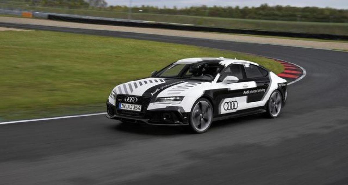 Audi a de l’expérience dans le domaine. On se souvient du prototype d’Audi TT bardé de technologie que le constructeur a lâché sur la montée de Pikes Peak il y a quelques années. Dans le genre autonome et rapide, BMW a réplique avec une voiture qui drifte toute seule. La RS7 Piloted Driving Concept pousse le bouchon encore plus loin. Tout d’abord, rien ne laisse présager qu’il s’agisse d’une voiture autonome puisque cette Audi RS7 ressemble en tout point, en dehors de la livrée noire et blanche, à la version de série. Mais sous la carrosserie se cache une grosse dose de capteurs divers et de puissance de calcul. Audi se refuse d’entrer dans les détails mais annonce qu’elle utilise des signaux GPS « spécialement modifiés » avec une précision au centimètre.