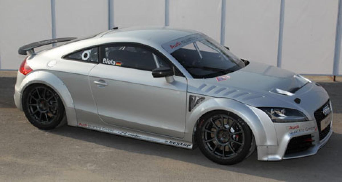 Basée sur le coupé TT, elle reçoit un moteur 2.5 TFSI de 340ch et une boîte S-Tronic. Outre les indispensables équipements dédiés à la course (sièges baquets avec harnais, arceau…), elle reçoit un capot, des portes et un hayon réalisés en fibre de carbone, des vitrages en polycarbonate (sauf le pare-brise naturellement), un différentiel à glissement limité et des amortisseurs réglables.