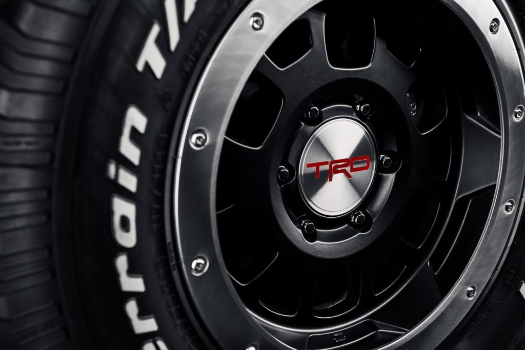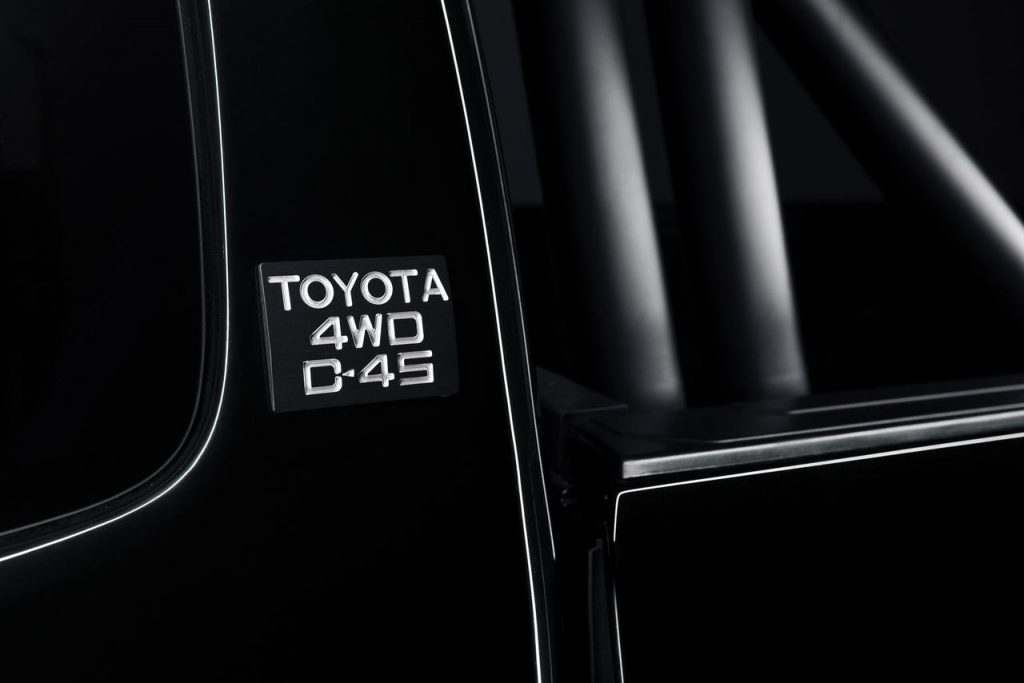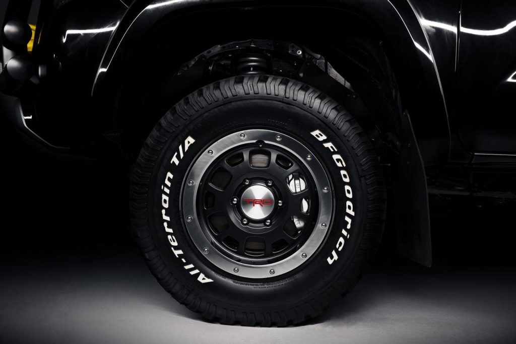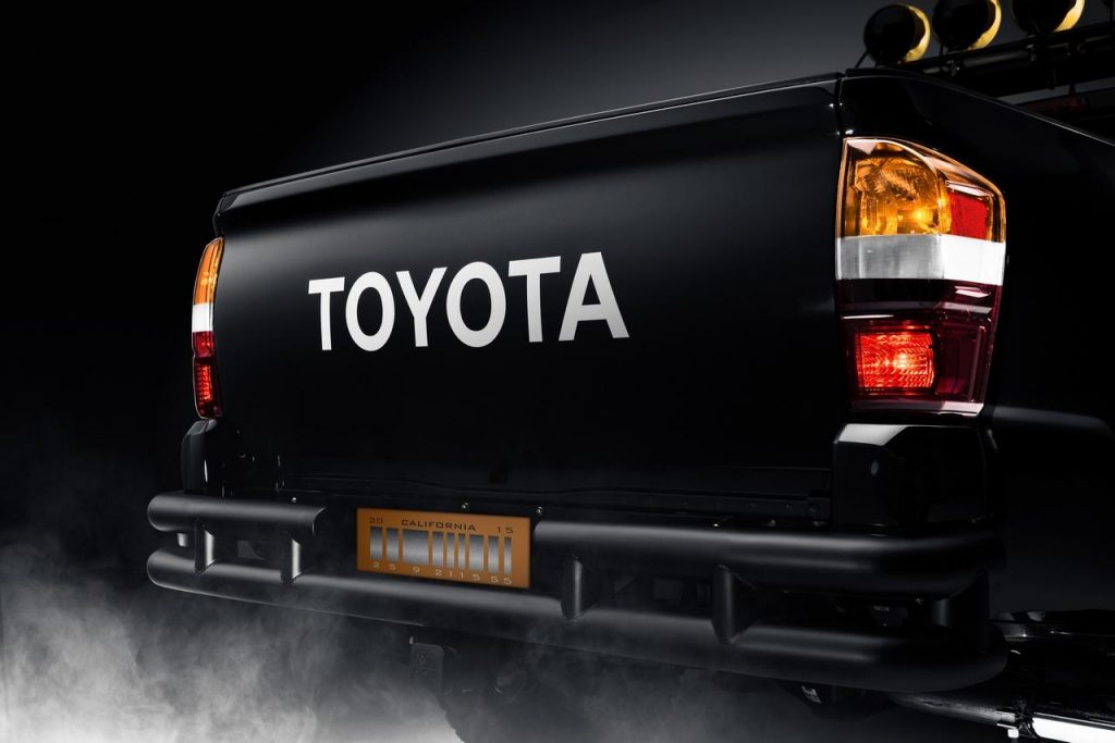 Ce concept est peint en noir et est équipé de suspensions tout-terrain. Il hérite également de jantes TRD et est chaussé en pneumatiques BF Goodrich. On découvre également la greffe d’une barre d’éclairage supplémentaire ou encore un traitement spécifique au niveau des phares à l’avant comme à l’arrière. La touche finale est apportée par des parechocs tubulaires à l’avant et à l’arrière. Pas la moindre trace d’un hoverboard en revanche.