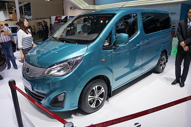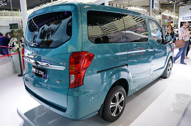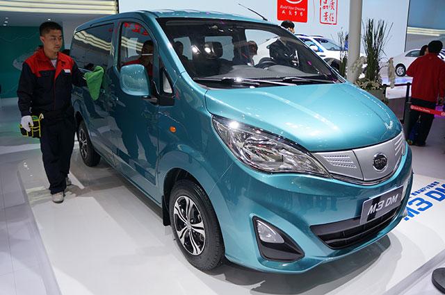 Le minivan M3 est le moins sexy du lot. Il n’en est pas moins important pour Byd, qui veut percer hors des voitures particulières. Du reste, c’est un clone du Nissan NV200. Cette version de salon dispose d’un 1,5l 107ch, secondé par un moteur électrique 30kW (43ch.) Le prix (en version normale) est autour de 75 000 yuans (9 000€.)