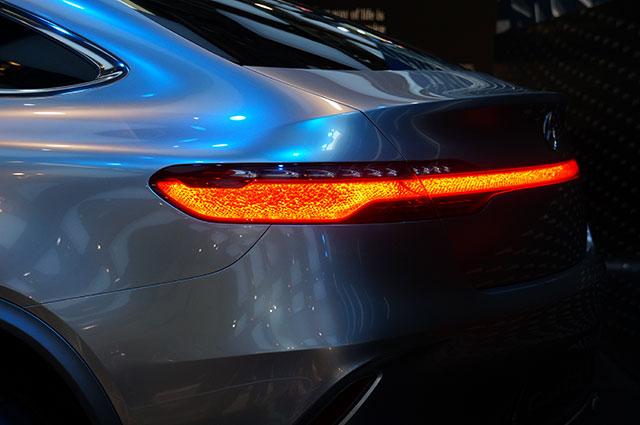 Au niveau du gabarit, le SUV Coupé, sa ceinture de caisse haute et conséquente garde au sol, annonce une longueur de 4,90 m pour une hauteur de 1,75 m et une largeur de 2 m. Fier il adopte des jantes de 22″ et est chaussé en 305/45. Mix des genres, ce concept quatre roues motrices permanentes s’offre une face avant de ML et pioche au sein des motorisations en vigueur recevant le V6 3.0 l Biturbo de 333 ch et 480 Nm couplé à la boîte automatique neuf vitesses 9G-Tronic Plus.