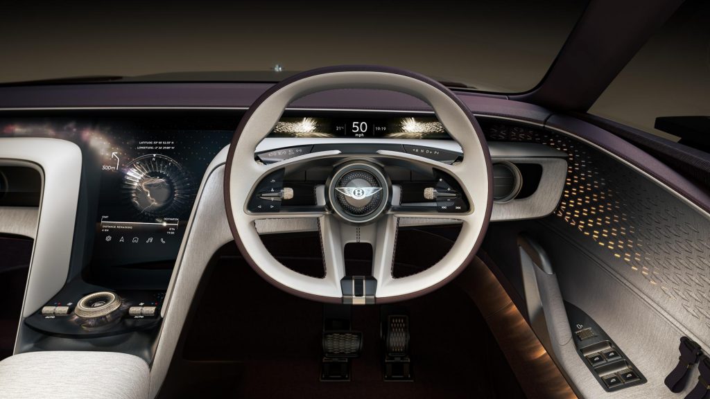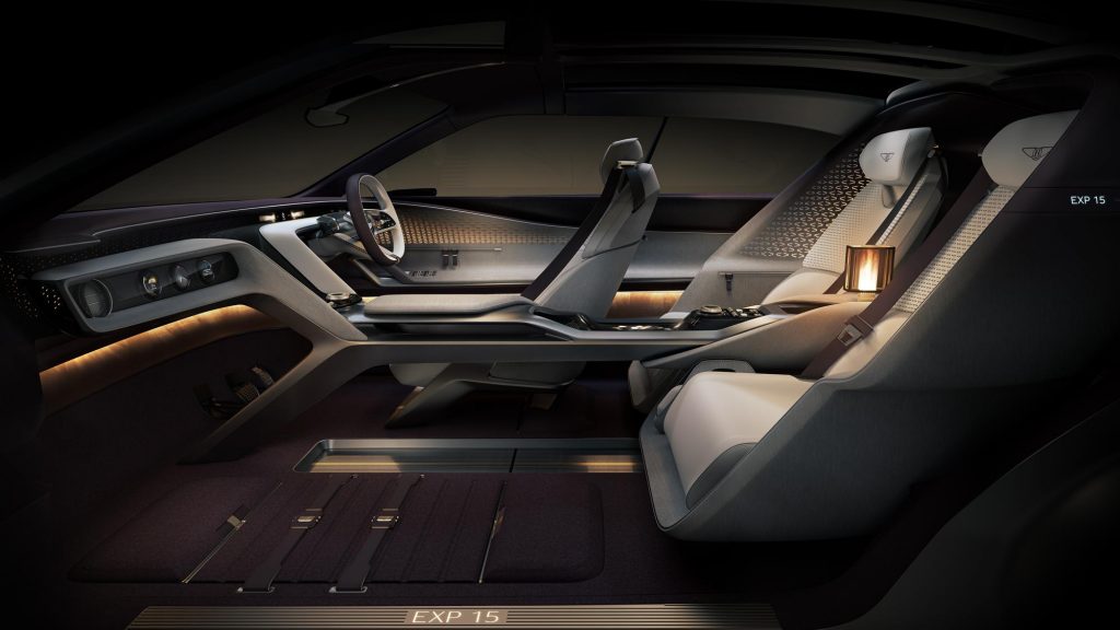 Ce concept Bentley EXP 15 a un style baroque. Mais Bentley précise qu’il ne préfigure pas le « petit » véhicule électrique à venir en 2026. Ce sont des pistes de design et d’idées techniques pour des véhicules à venir à plus long terme. Un vrai concept en fait.