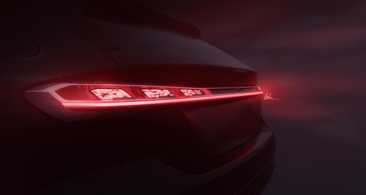 La prochaine à être présentée c'est donc cette Audi A5 qui doit prendre la succession de l'A4. Esthétiquement, on a droit à une signature lumineuse arrière particulièrement complexe et expressive. A voir sur les vraies photos car ici c'est une illustration. Il semble qu'Audi mettre des matrices de LED capables de changer l'affichage des feux. A confirmer ou infirmer. On voit un bandeau complet qui barre l'arrière avec les anneaux juste au-dessus et une lunette qui semble inclinée. Pour découvrir le reste, il faudra patienter jusqu'à mardi prochain.