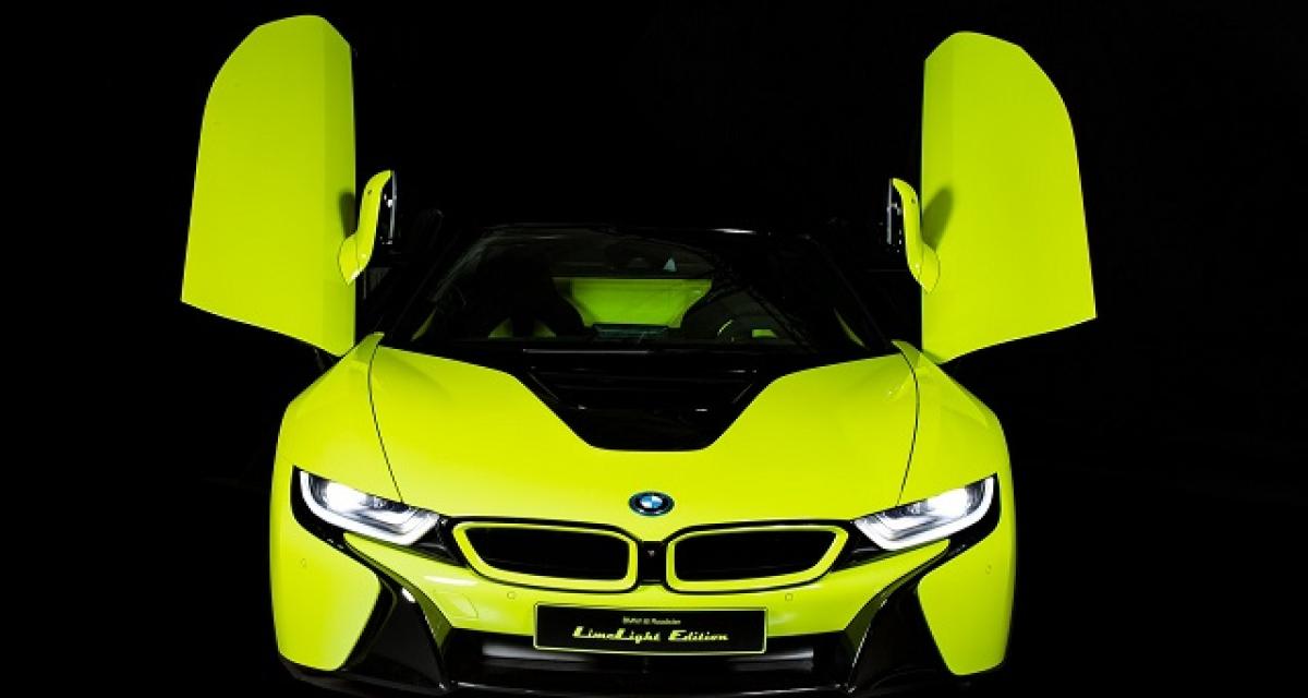 L’Alcantara noir et calcaire recouvre les sièges avec surpiquage jaune, le tableau de bord, les panneaux de porte et le volant, parsemés de trous découpés au laser pour créer un design inspiré de l’hélice du logo BMW. Ce revêtement alterne à l’intérieur avec des inserts jaune citron tirant sur le vert, quelques finitions carbone et des inserts bleus lumineux qui rappellent l’éclairage de l’affichage électronique, contribuant à créer un atmosphère futuriste. Le jaune citron « flashy », c’est surtout la couleur prédominante de la carrosserie, qui joue sur les contrastes avec certains éléments des boucliers, du pavillon et des roues entièrement noirs. Le jaune intense se retrouve également sur les étriers de freins du système de freinage hautes performances.