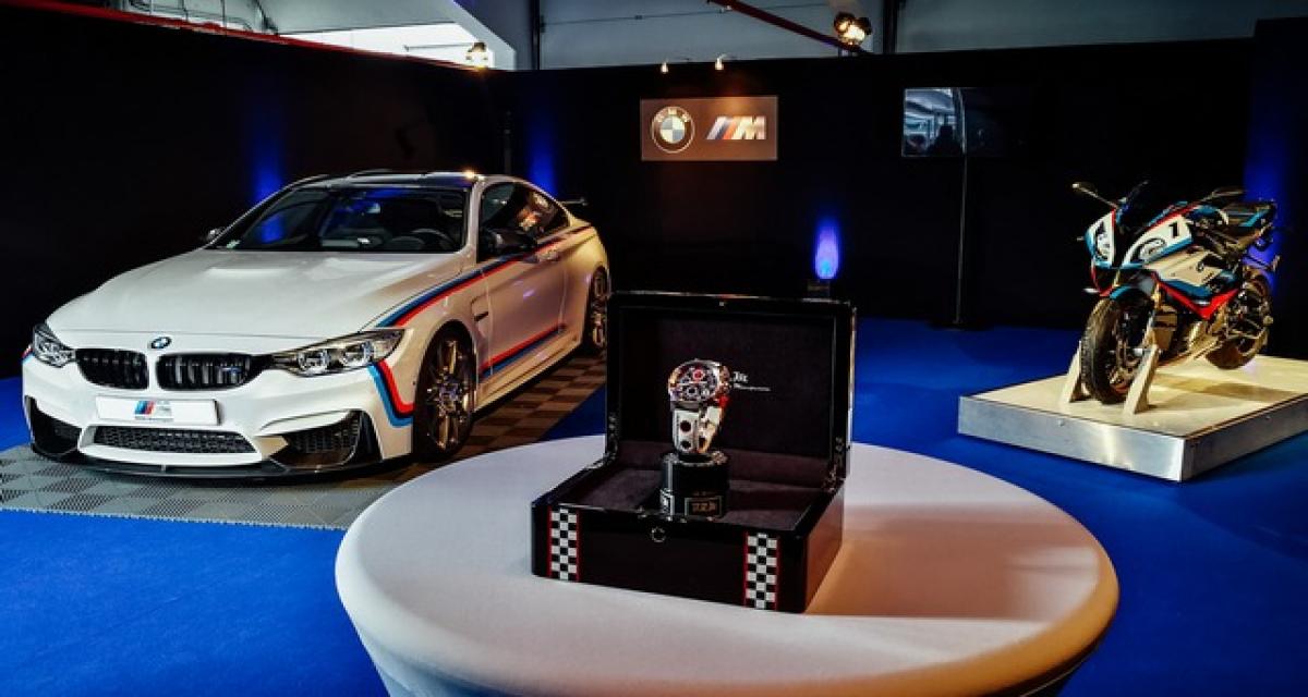 Outre la BMW M4 avec pack Compétition et accessoires d’origine BMW Performance le pack intègre aussi une BMW S 1000 RR et un chronographe BRM.