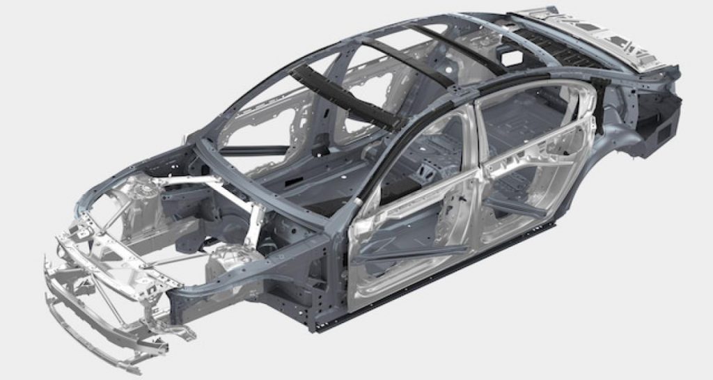 Depuis plus d’une décennie, les constructeurs premium allemands se sont lancés dans un allègement de leurs modèles grâce à l’utilisation de l’aluminium. Pionnier dans cette stratégie, BMW a frappé un grand coup en dotant la Série 7 d’une structure de carrosserie qui a recours à la matière plastique renforcée par fibres de carbone (PRFC). Comme la Série 5 partage ses soubassements avec le vaisseau amiral de la marque, beaucoup pensaient que la berline allemande allait elle aussi utiliser le PRFC. Pour des raisons de coût, BMW a privilégié mix de matériaux faisant appel à l’aluminium, aux aciers à haute limite élastique et au magnésium.
