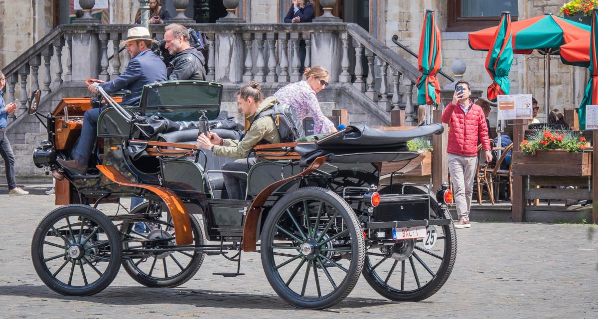 Ici, la ville de Bruxelles a décidé de ne plus utiliser de chevaux pour son service touristique de calèches et on fait donc un bond de 194 ans en arrière. Il faut dire que la Grand-Place peut devenir une fournaise en plein été sous le soleil et que ce n'est pas une sinécure pour nos amis équidés. C'est Thibault Danthine qui a remporté un appel à projet de la ville. Il se passe de chevaux depuis 2022 déjà pour ses services de calèches.