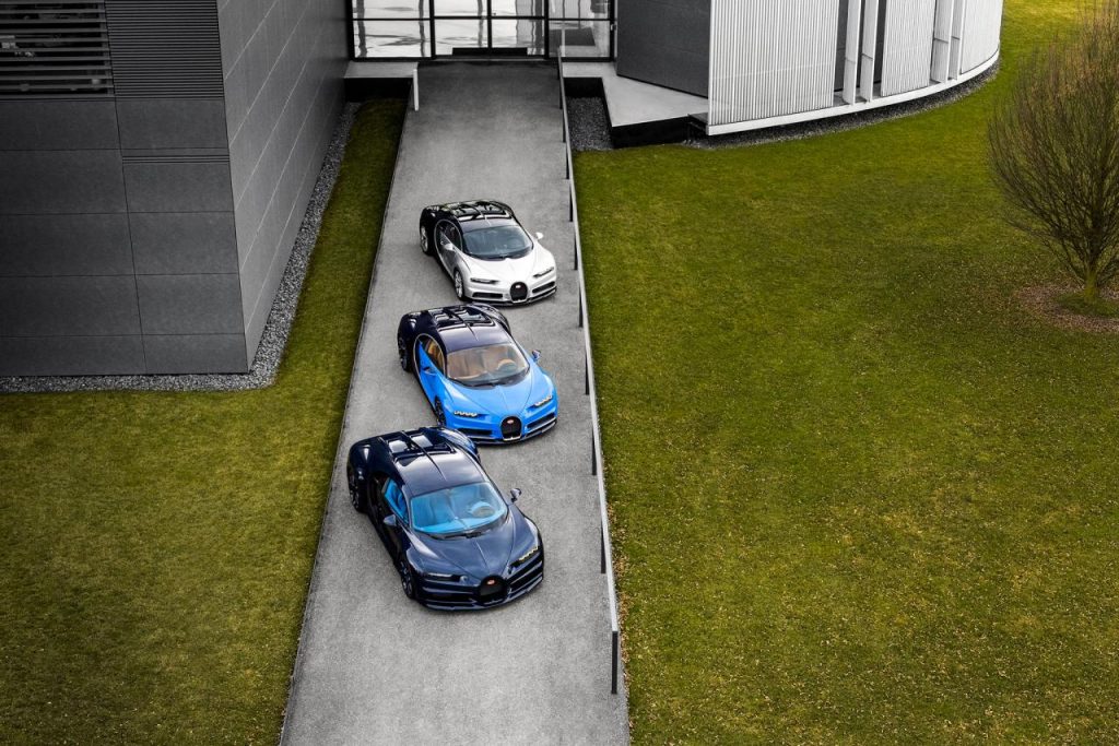 L’usine de Molsheim a donc achevé la production des trois premiers exemplaires de la nouvelle Bugatti Chiron. Ces trois premiers modèles ont posé une dernière fois avant de partir rejoindre leur propriétaire légitime. En Europe et au Moyen-Orient. Un exemplaire bleu Bugatti / bleu foncé, un autre carbone bleu, et le troisième « plus discret » avec sa livrée argent / noir.
