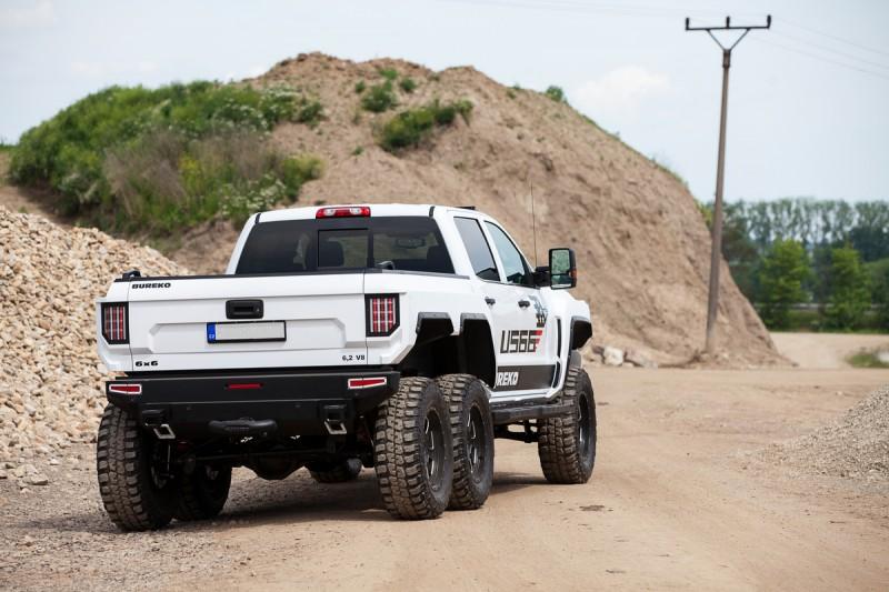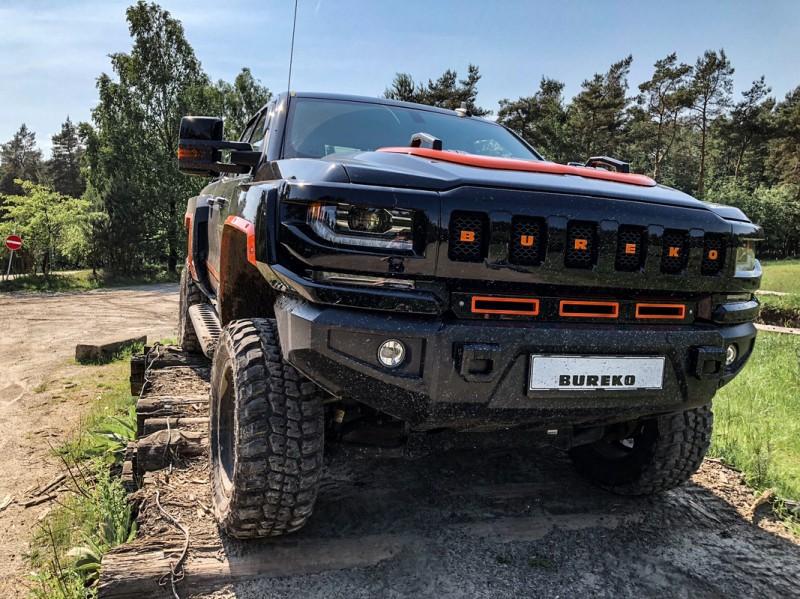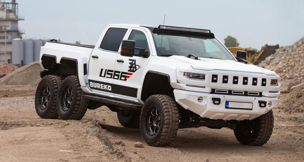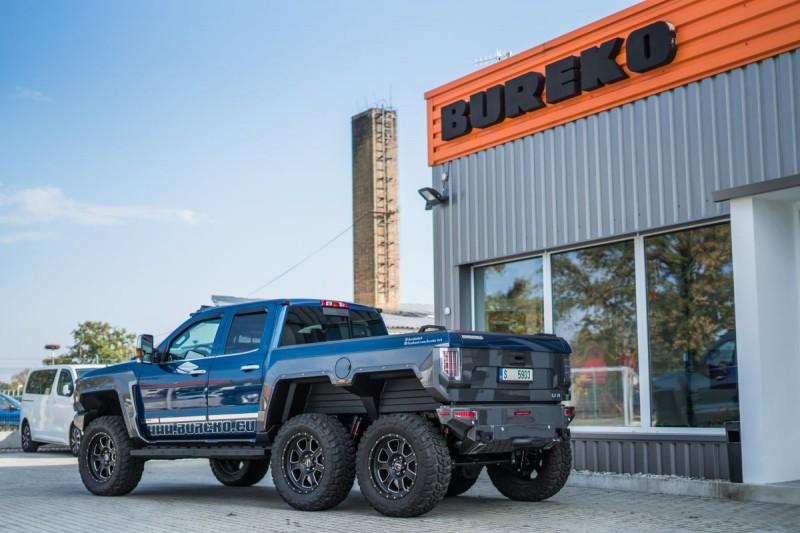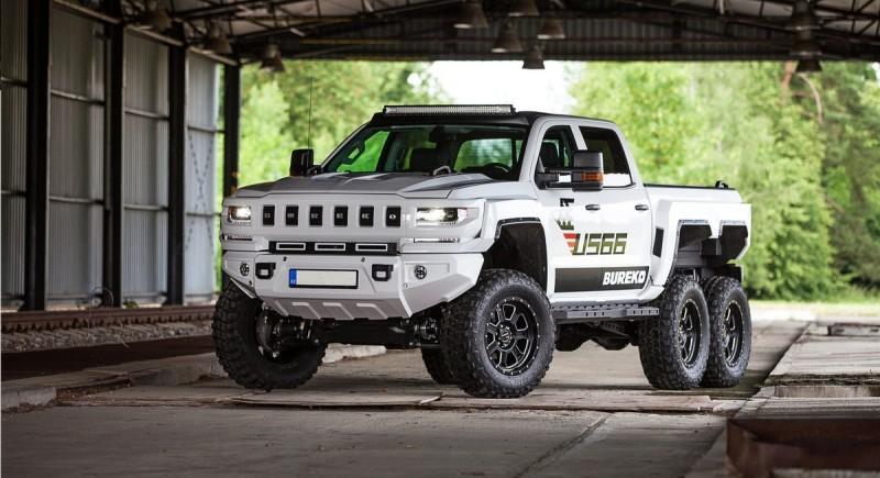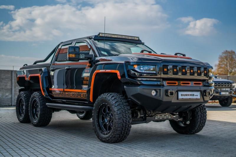 Depuis quelques années déjà, le carrossier tchèque Bureko propose à son catalogue le 4×4. Un modèle techniquement basé sur un Hummer H2, et qui reprend le design du concept HX, mort-né suite à la faillite de GM et la disparition de Hummer. Il y eut ensuite un premier 6×6, basé sur un Land Rover Discovery.