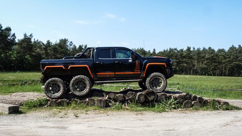 6×6, l’assurance d’en mettre plein la vue plus que d’efficacité en franchissement, surtout avec un look de Hummer et jusqu’à 1200 ch. On attend encore le préparateur qui nous proposera un mini Suzuki Jimny 6×6…