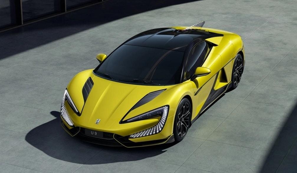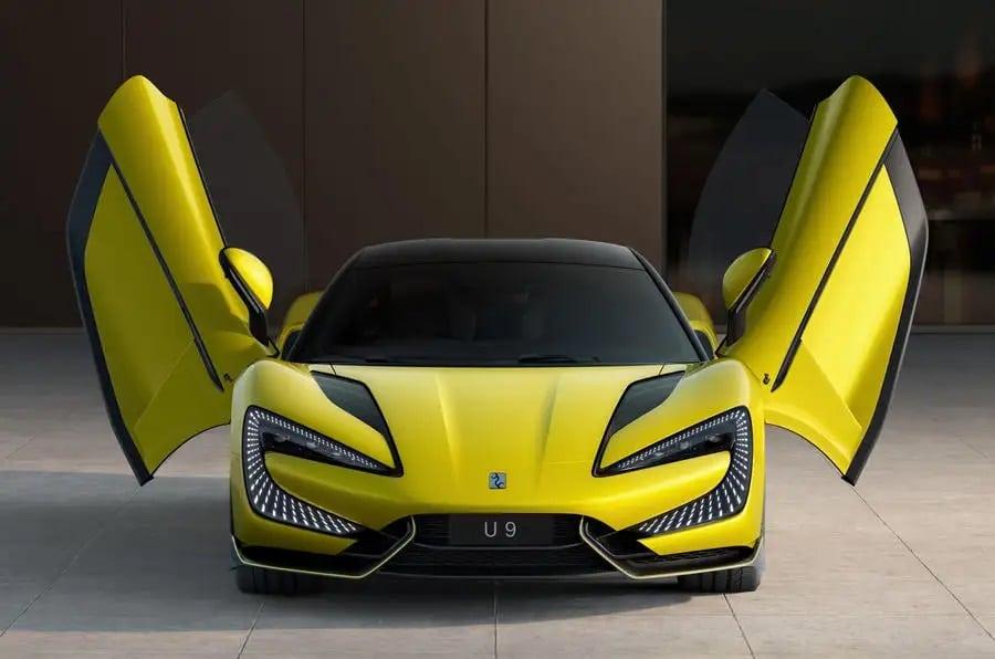 La surprise est venue de la présentation d’un autre modèle, pas encore en phase de pré-production néanmoins, une supercar Yangwang U9. On sait seulement que le modèle est également une voiture électrique à quatre moteurs, et qu'elle peut accélérer de 0 à 100 km/h en seulement 2 secondes. Quant à l'extérieur, le "neuf" a des portes papillon et un aileron stabilisateur. La voiture de sport a également reçu une optique de tête, composée de nombreux « coups » de LED : les Chinois ont appelé cette décision de conception « ciel étoilé ». On devine ça et là des inspirations de la Corvette dernière génération ou de l’Audi R8 pour la partie arrière.