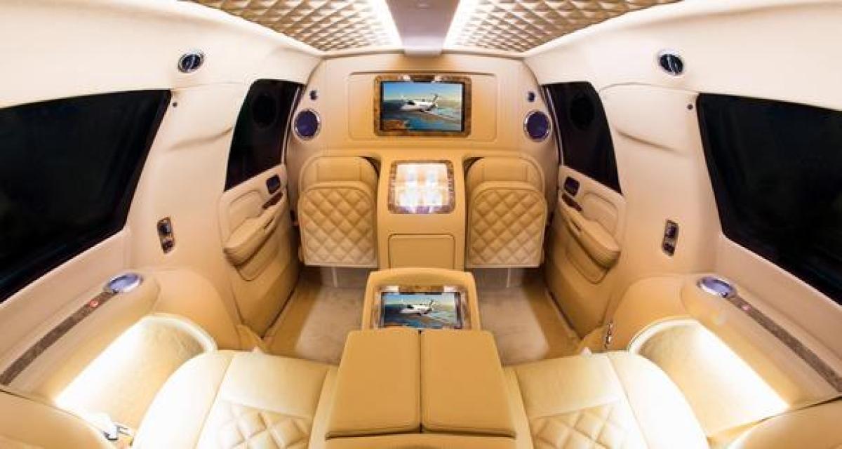 Une fois encore, les artisans anglais travaillant chez Carisma Auto Design n’ont pas ménagé leurs efforts pour répondre aux demandes du client. Cuir Connolly, véritables inserts et boiseries, fauteuils indépendants, réfrigérateur, compartiment pour flûtes en cristal, ensemble audio/vidéo/informatique, éclairage d’ambiance, 1 km de câbles, 75 mètres carrés de cuir et 700 heures de travail : voici quelques menues précisions sur la réalisation. Petite spécificité supplémentaire : cet exemplaire là du Cadillac Escalade s’offre en complément un blindage (B4), autre service de « personnalisation » décliné par Carisma Auto Design. Évidemment ici on n’évoque pas le coût des transformations.
