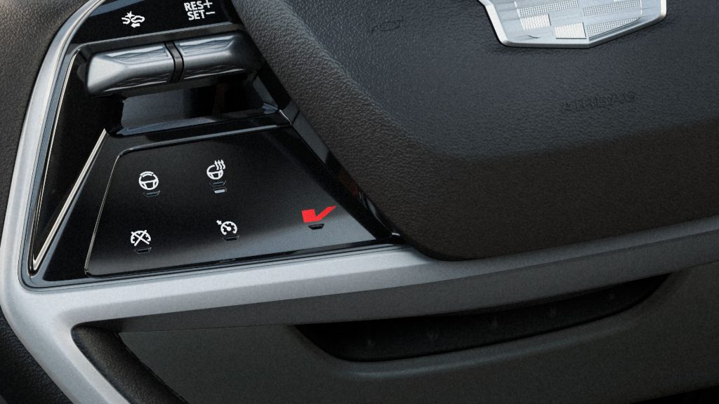 Et cette Vistiq a toute l’opulence d’une vraie Cad. Bref, je suis fan. ,Il y a le logo Cadillac sur le volant ça suffit.