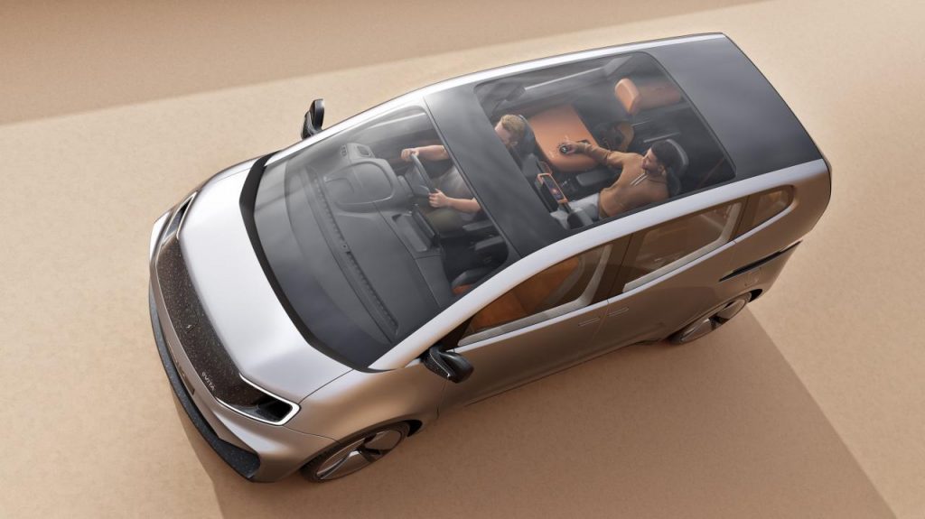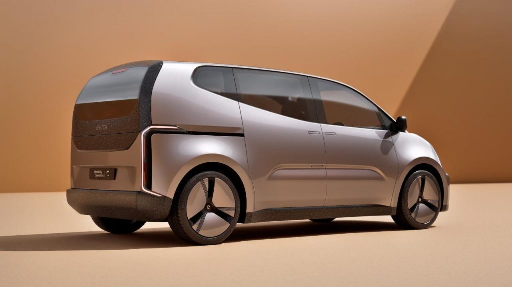 Esthétiquement (après tout on est chez Ian Callum hein) eVita ressemble à un monospace. Le capot est très court et quasiment dans le prolongement du parebrise. De larges portes dégagent l'accès latéral avec des portières arrière coulissantes. Enfin, l'arrière est très vertical pour maximiser le volume. Sinon on est dans l'univers du VE avec une signature lumineuse, une calandre pleine, des phares cachés dans un renfoncement. C'est très sobre dans le design.