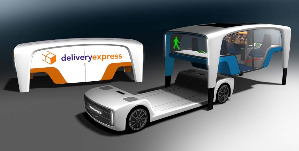 Le nouveau concept Rinspeed Snap donne comme l’année dernière une vision d’un véhicule autonome de Niveau 5. Donc sans aucun conducteur, ni de commandes. Et il reprend ici l’idée du « skateboard » contenant tous les composants techniques : châssis, systèmes de propulsion, capteurs, etc… Une plateforme sur laquelle viennent se greffer des modules habitables ou destinés aux transports de marchandises. Et l’on peut envisager d’autres usages bien entendu.