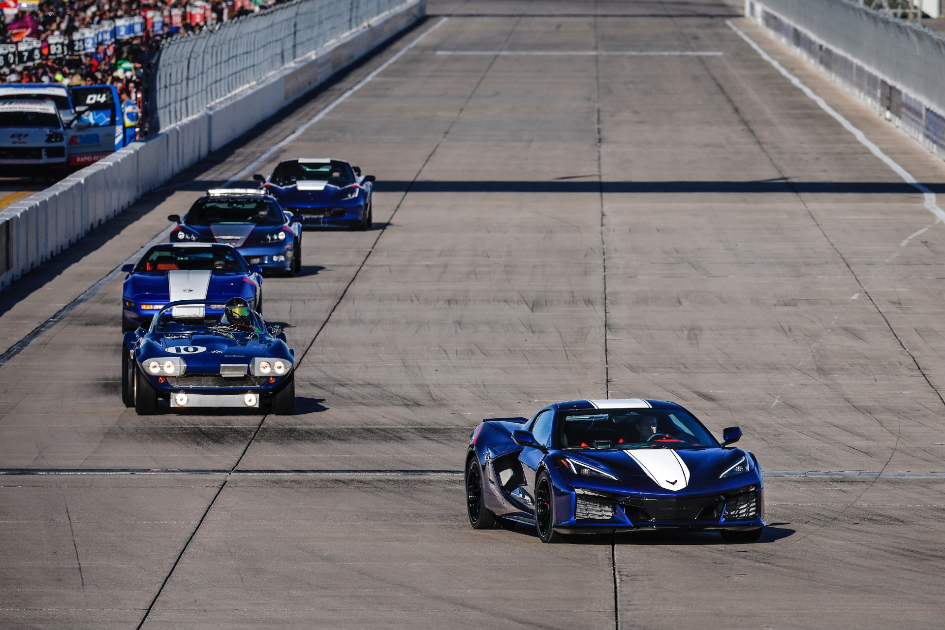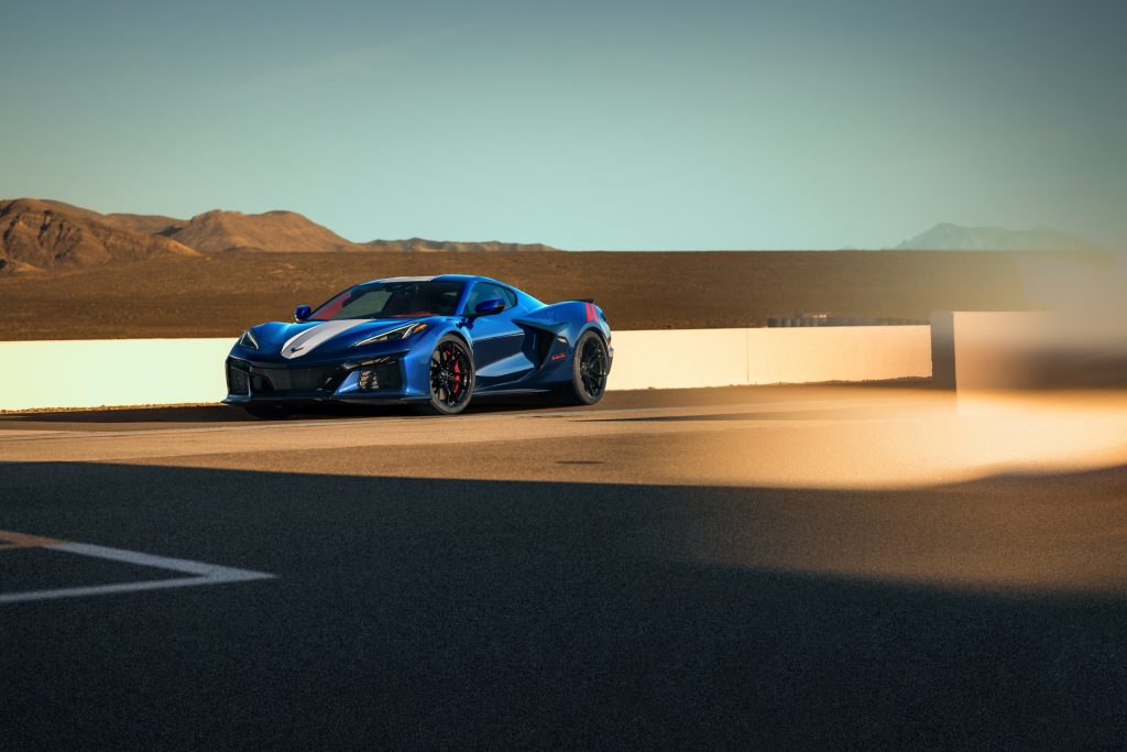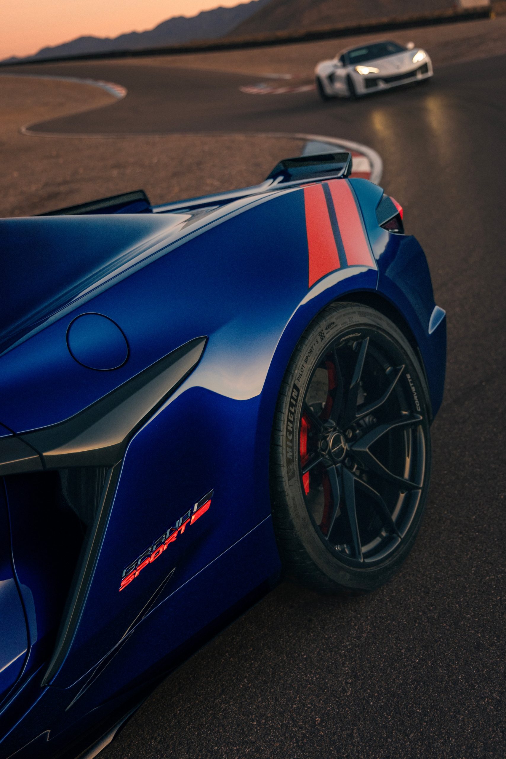 Le bleu Amiral apparu sur la C4 Grand Sport est de retour pour 2026. Mais changement notable, les deux bandes rouges passent de l’aile avant à l’aile arrière, suivant ainsi le changement d’implantation du moteur de la Corvette de central avant pour les sept premières générations à central arrière pour la huitième.